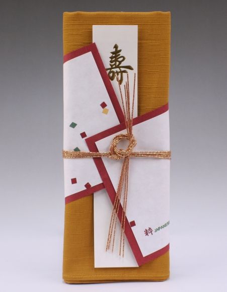 | ■【表包みの特徴】ちぎり絵風の七夕紙に水引を掛けました ■【サイズ】表包み:20.5×8cm、風呂敷:約40cm巾 ■【中身】厚手生地の綿紬風呂敷 ※一割を入れる袋(寿)も付いています |
