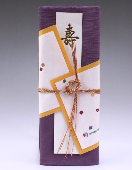| ■【表包みの特徴】ちぎり絵風の七夕紙に水引を掛けました ■【サイズ】表包み:20.5×8cm、風呂敷:約40cm巾 ■【中身】厚手生地の綿紬風呂敷 ※一割を入れる袋(寿)も付いています |
