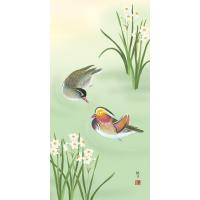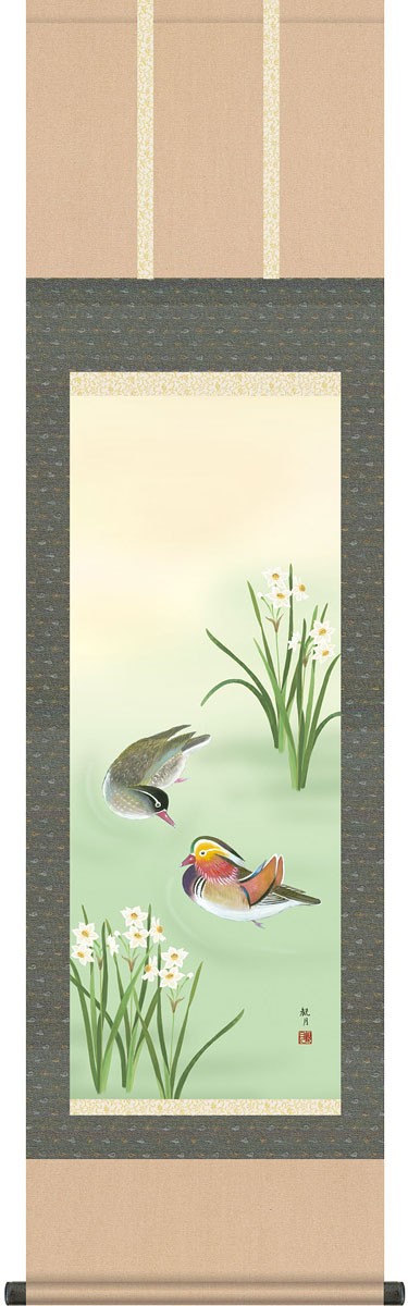 掛軸 (掛け軸) 冬用 鴛鴦 森山観月 尺三立 約横44.5cm×縦164cm g4178 冬 冬掛 冬掛け 花鳥 おしどり 夫婦円満 縁起 結婚 婚約 結納