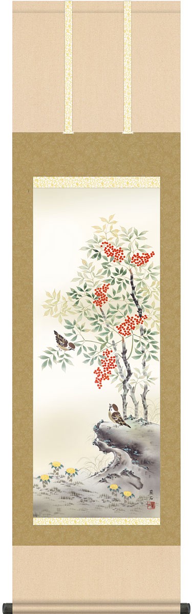 掛軸 (掛け軸) 冬用 南天福寿 高見蘭石 尺三立 約横44.5cm×縦164cm g4595 冬 冬掛 冬掛け 花鳥 厄除け 厄除 縁起 贈答 贈り物