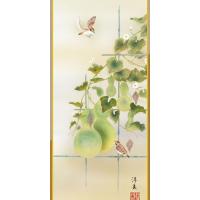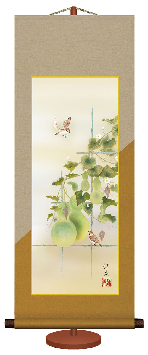 掛軸 (掛け軸) 和風モダン掛 夏用 六瓢 上村洋美 約横31cm×縦81cm (専用スタンド付) g6436 KM1A10-008 夏 夏掛 夏掛け 花鳥 無病息災 長寿円満