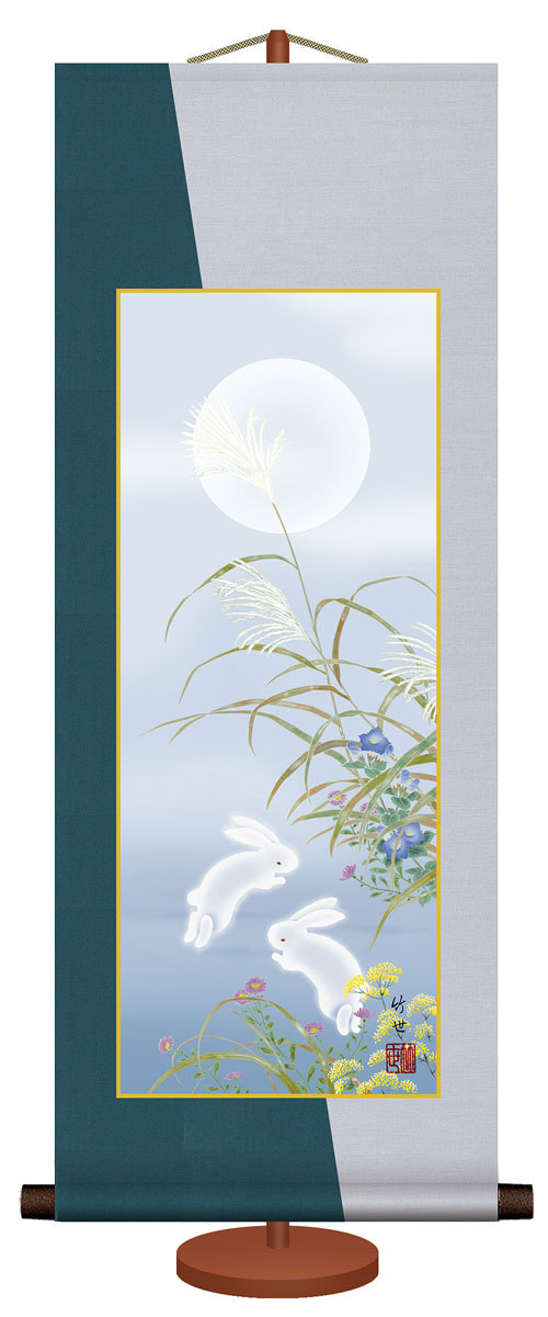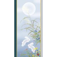 掛軸 (掛け軸) 和風モダン掛 秋用 秋草に兎 田村竹世 約横31cm×縦81cm (専用スタンド付) g6440 KM1A10-012 秋 秋掛 秋掛け 花鳥 お祝い 御祝