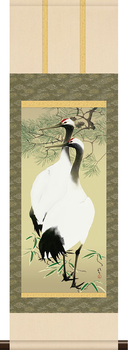 掛軸 掛け軸 本格 ミニ掛軸 慶鶴図 川端龍子 約横28cm×縦90cm ミニサイズ 名画複製画 g6615 KM3R1-055 日本画 巨匠 お祝い 御祝