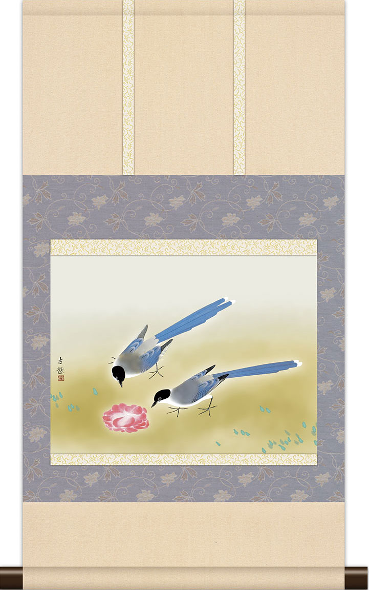 近年では、本来の作家ものの掛け軸の他に、流行の工芸美術(特殊複製画)作品といろいろとあり、図柄も四季折々の掛け軸、開運の掛け軸、また仏事などの物も含めて、たくさんの種類のものを取り扱っております。