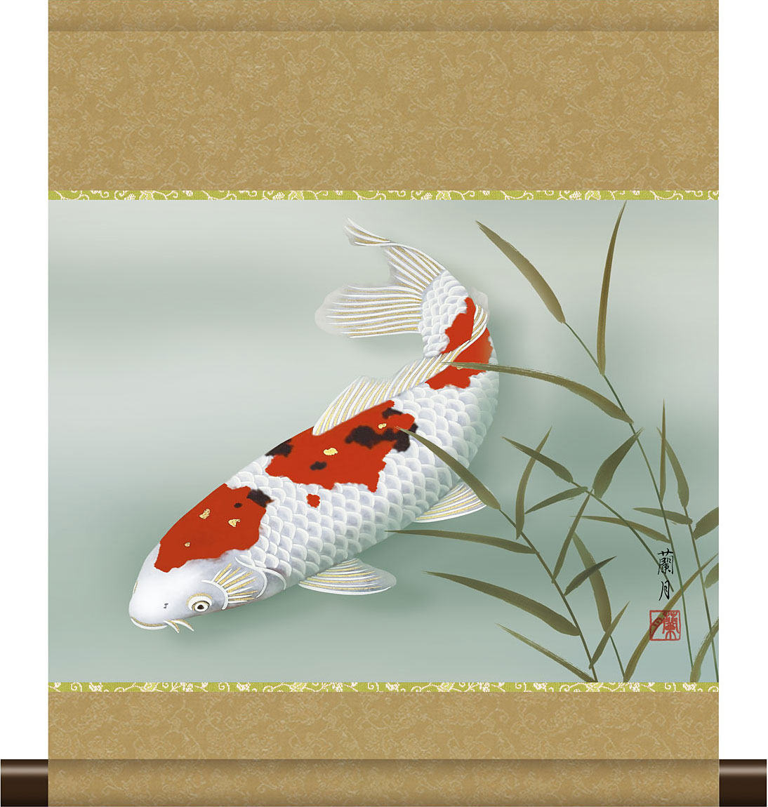 掛軸 掛け軸 和風モダン掛 夏用 錦鯉 吉井蘭月 約横35cm×縦42cm ミニサイズ ミニ掛軸 g6658 KM3R2-084 夏 夏掛け 花鳥 鯉 昇鯉 登竜門 開運 縁起 吉祥 選挙