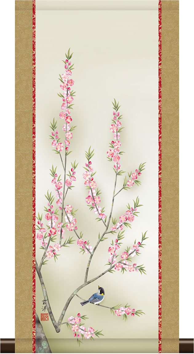 掛軸 掛け軸 和風モダン掛 春用 桃花に小鳥 近藤玄洋 約横28cm×縦60cm ミニサイズ ミニ掛軸 g6687 KM3R2-023 春 春掛 春掛け 花鳥 吉祥 お祝い 贈答 贈り物
