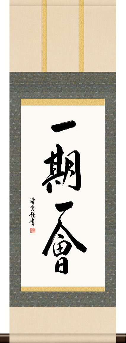 掛軸 掛け軸 本格ミニ掛軸 一期一会 吉村清雲 約横28cm×縦90cm ミニサイズ ミニ掛軸 茶掛け g6830 KM3R5-006 茶道 お茶席 お茶会 禅語 墨跡 禅林墨跡 禅宗