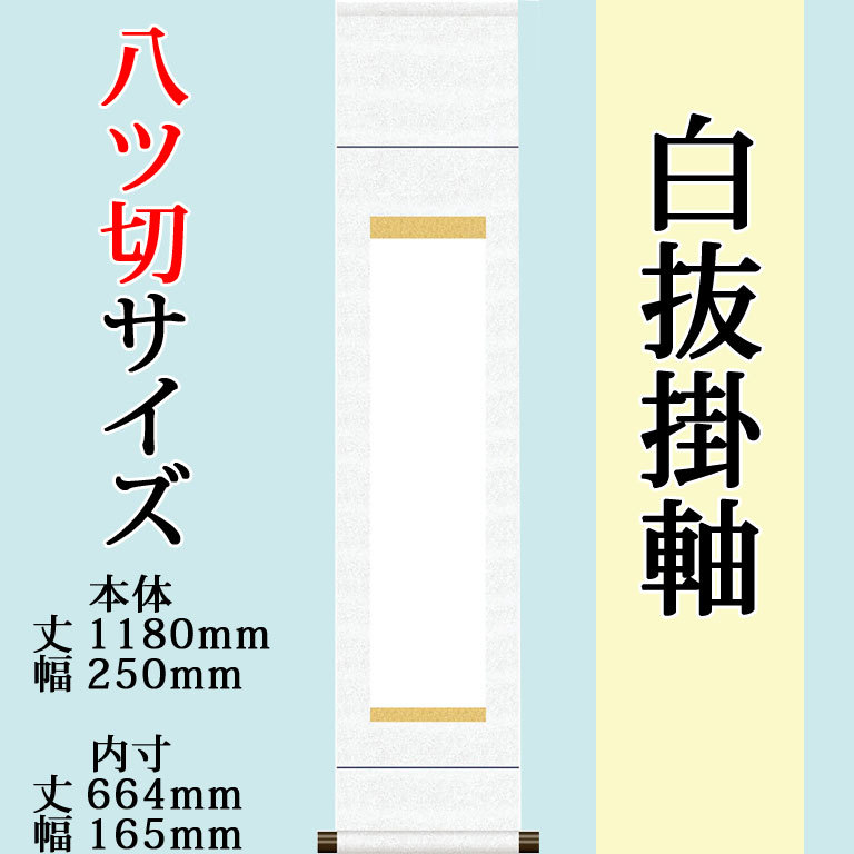 仕立上白抜(白無地)神事用掛軸 八ツ切 白綸子御神号表装 モダン おしゃれ 白紙 無地 書道 書画 水墨画 俳画 展覧会 作品展