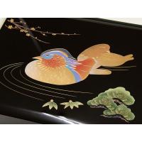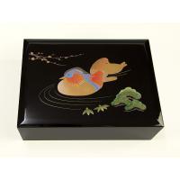 ![]() 紀州塗の文庫箱です。 | ![]() おしどりの蒔絵は盛り上がりがあり非常に美しい光沢に仕上がっています。 |