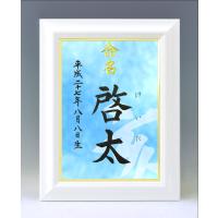 デザイン命名書 A4ホワイト額(干支 漢字 ブルー)結納屋さんの毛筆手書き命名書