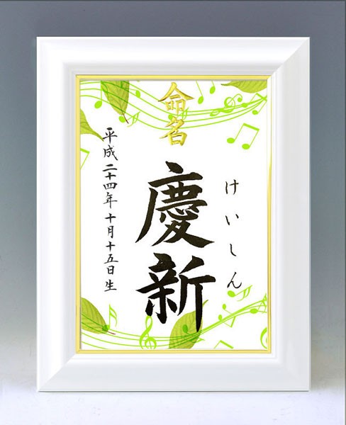 デザイン命名書 A4ホワイト額(葉っぱのシンフォニー)結納屋さんの毛筆手書き命名書