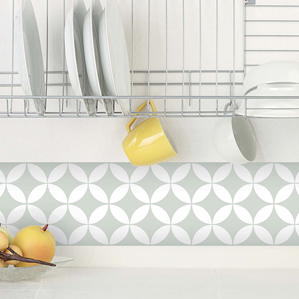 ドレジャー タイルステッカー 1シート WHITE AND PASTEL GREEN ROSACES キッチン用品 水に強い ビニール 壁紙