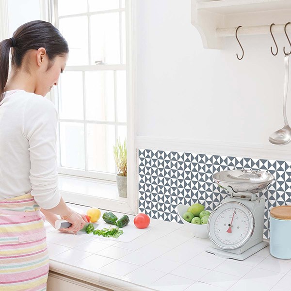 ドレジャー タイルステッカー 1シート GRAY AND WHITE TRIANGLE ILLUSION キッチン用品 水に強い ビニール 壁紙