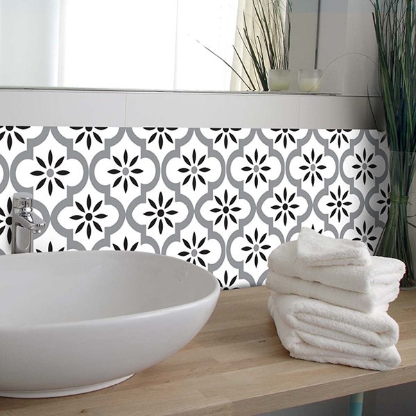 ドレジャー タイルステッカー 1シート GRAY, WHITE AND BLACK ORIENTAL キッチン用品 水に強い ビニール 壁紙