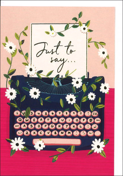 ミニグリーティングカード 多目的・ありがとう サンキュー タイプライターと花 バレンタイン 母の日 おしゃれ メッセージカード