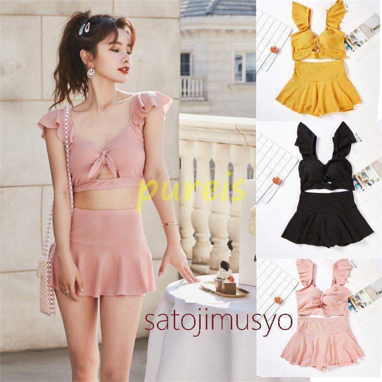 水着 レディース 体型カバー 韓国 上下セット ビキニ フリル 二の腕カバー パッド付 ワイヤー付 女性 ビキニ みずぎ 小胸 ママ水着 温泉 海