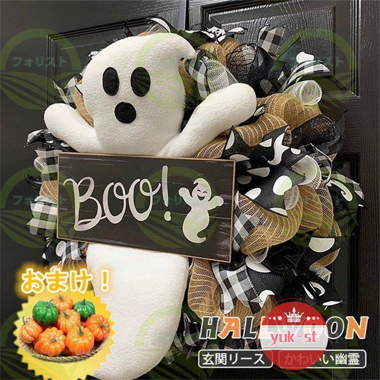 【特価】Halloween ハロウィン 飾り ハロウィンリース クリスマスリース 幽霊 面白い かわいい 壁掛け 玄関 ドア飾り 庭園飾り 仮装パーティー