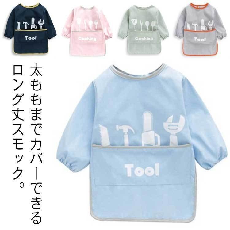 【特価】大特価長袖 男の子 汚れ防止 女の子 幼稚園 100cm ポケットつき 130cm ベビー 保育園 ロング丈スモック 外遊び 防水 お絵描き お食事