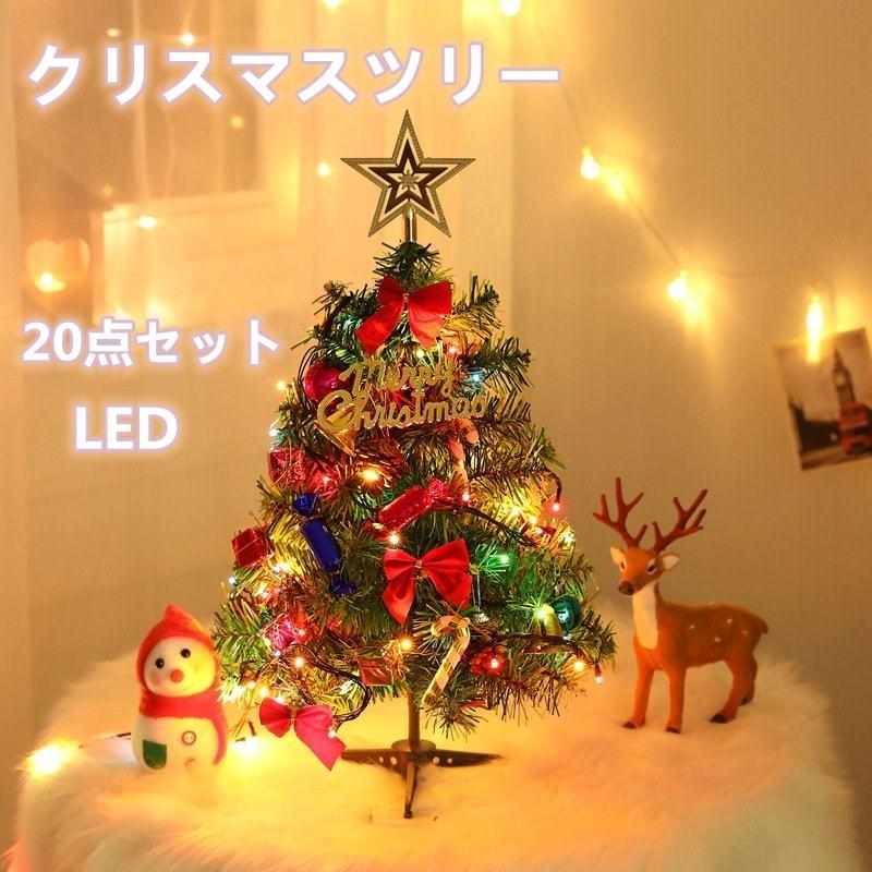 販売!クリスマスツリー 50cm 卓上 ミニツリー クリスマス飾り LEDイルミネーション 20点セット オーナメント おしゃれ キラキラ 組立 飾り