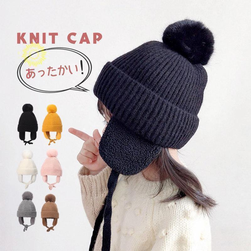 【特価】ニット帽 子供 ニットキャップ 女児男児 帽子 キッズ キャップ 裏ボア 男女兼用 耳あて付き 女の子 男の子 ポンポン ふわふわ 防寒保温