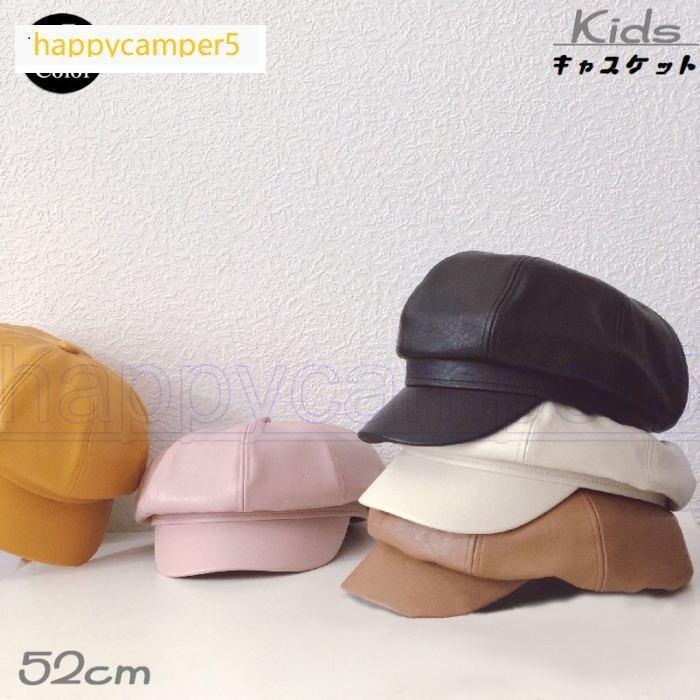 【特価】帽子 キッズ キャスケット 男の子 女の子 フェイクレザー 春 秋 子供用 おしゃれ かわいい ファッション 小物 52cm ブラック ベージュ イエ