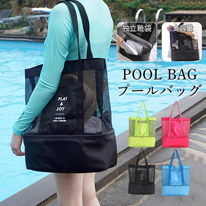 【特価】ビーチバッグ トートバッグ プールバッグ 乾湿分離 メッシュバッグ 肩がけ 手提げ 2層式 子供 シューズ収納