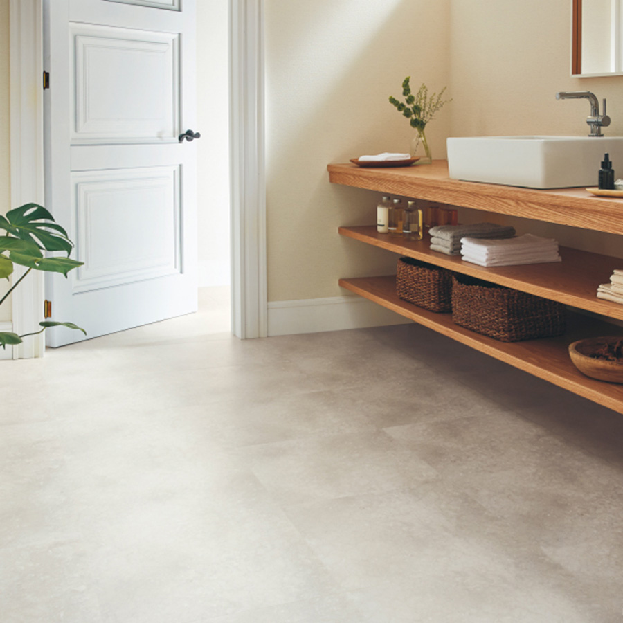 既設床材への重ね貼りや部分貼り替えが可能でリフォームにも使いやすい置敷きビニル床タイルです!