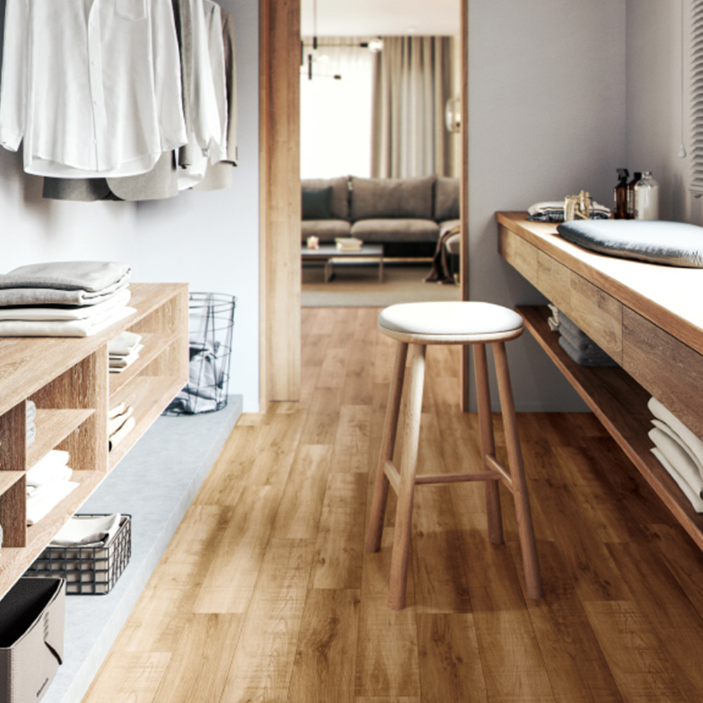 ソーマークの入ったオーク柄。木目の抑揚をいかし、落ち着いた表情に仕上げました。