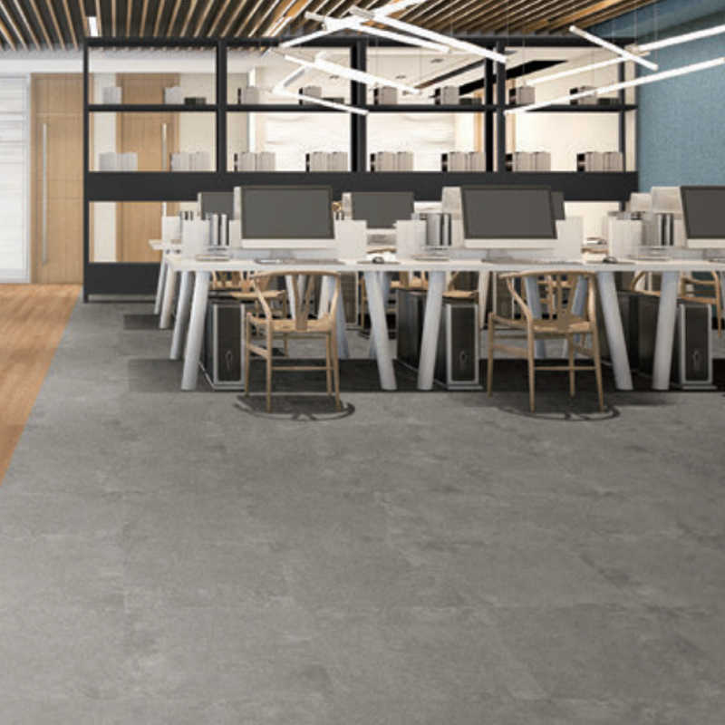 オフィスや店舗、各種施設で幅広く利用できる、ワックスメンテナンス不要の高意匠置敷きビニル床タイル。