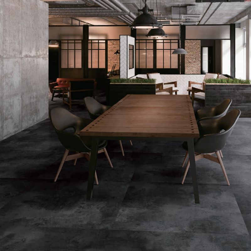 オフィスや店舗、各種施設で幅広く利用できる、ワックスメンテナンス不要の高意匠置敷きビニル床タイル。