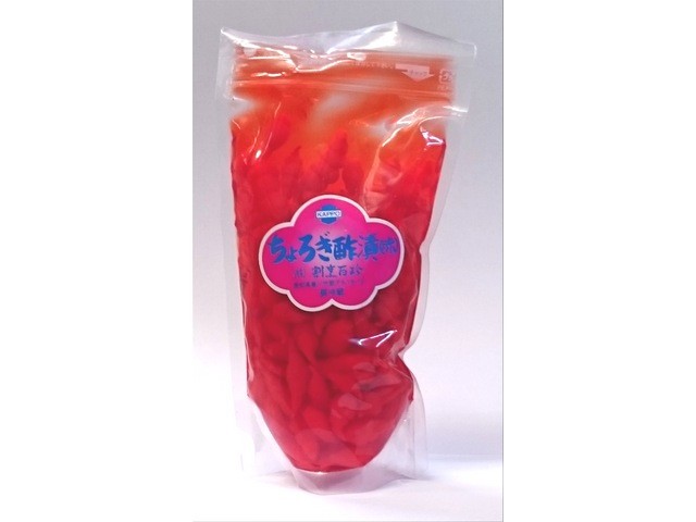 原材料名:ちょろぎ、漬け原材料(梅酢、食塩、醸造酢)、調味料(アミノ酸等)、酸味料、保存料(ソルビン酸K)、着色料(赤102、黄4)、香料、漂白剤(次亜硫酸Na)