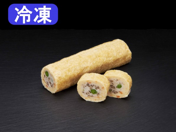●色とりどりの野菜をすり身に混ぜて油揚げを巻いて仕上げております。