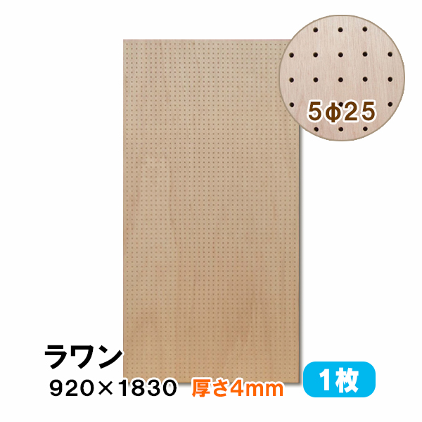 有孔ボード パンチングボード 穴あきボード 1枚 シナ合板 無塗装 ナチュラル 4mm厚×915×1825mm 5φ25P 床材本舗オリジナル diy A品 UKB-S4M2-525-1S