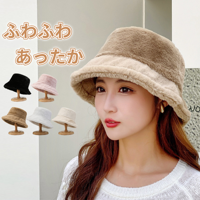 帽子 バケットハット レディース もこもこ ボア ふわふわ あたたかい 冬 防寒