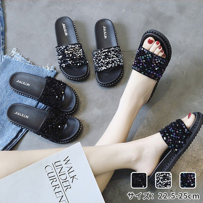 サンダル スリッパ レディース スパンコール シューズ 履きやすい おしゃれ シンプル キラキラ 夏 無地 カジュアル ビーチ 海 20代 30代 40代 50代 厚底