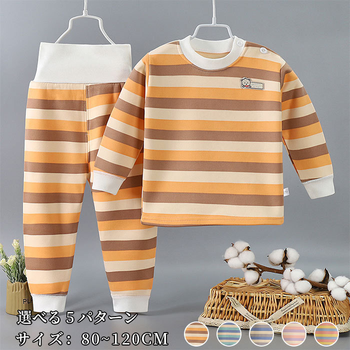 子供用 パジャマ 上下セット キッズ 裏起毛 女の子 男の子 ボーダー くまさん ベアー かわいい 幼稚園 保育園
