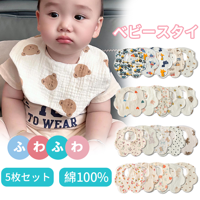 ベビースタイ 新生児 よだれかけ 360度回転 コットン 綿100% 花びら型 可愛い動物柄 出産祝い ビブ 赤ちゃん用