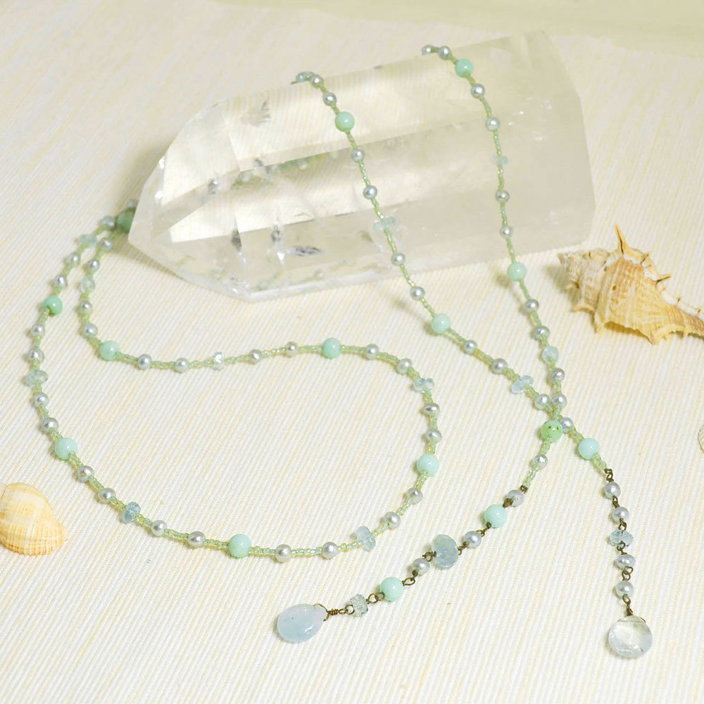 アクアマリン クリソコラ 淡水パールラリエット