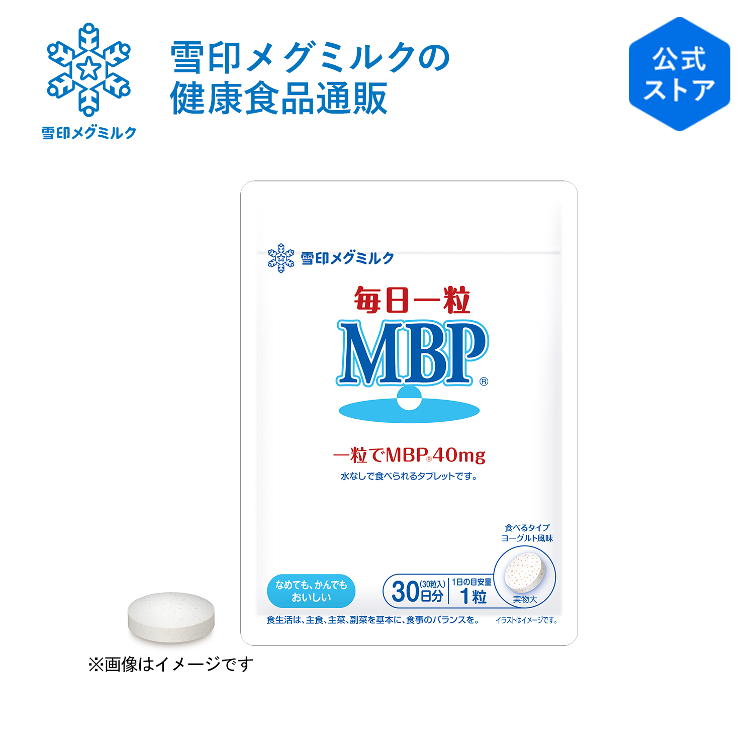 ●一度に多量に食べるとおなかがゆるくなる場合があります。 ●のどに詰まる危険性がありますので、そのまま飲み込まないでください。 ●お子さまの手の届かない場所に保存してください。 ●開封後はジッパーをしっかり閉めて保管し、なるべく早めにお召し上がりください。 ●タブレットに焦げ茶色や薄茶色の斑点が見られますが、原材料の一部です。 ●食生活は、主食、主菜、副菜を基本に、食事のバランスを。 ※MBP(R)は雪印メグミルク(株)の登録商標です。 ※当該品は保健機能食品ではありません。 |