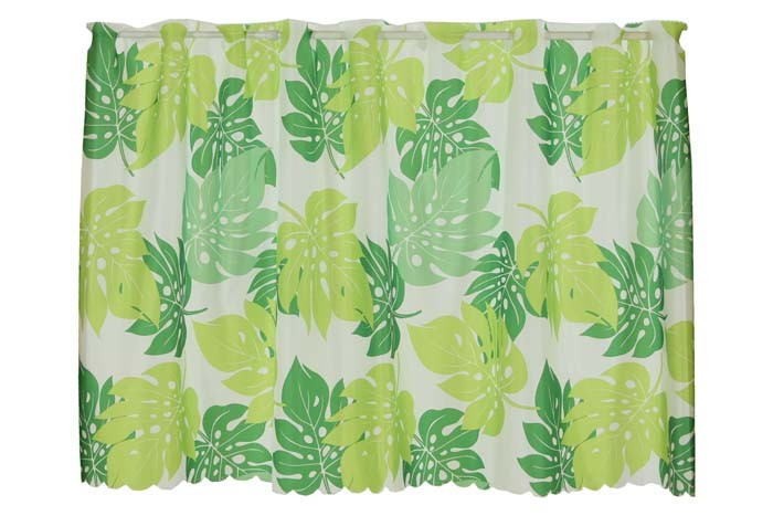 撥水 小窓 カフェカーテン 145×90cm モンステラ柄 16138naru 人気 小窓 出窓 16-138