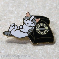 猫ピンズ 電話 サバトラ ポタリングキャット ピンバッジ ピ ンブローチ 文房具 ステーショナリー 猫雑貨 猫グッズ ネコ 雑貨 ねこ柄 ネコグッズ キャット