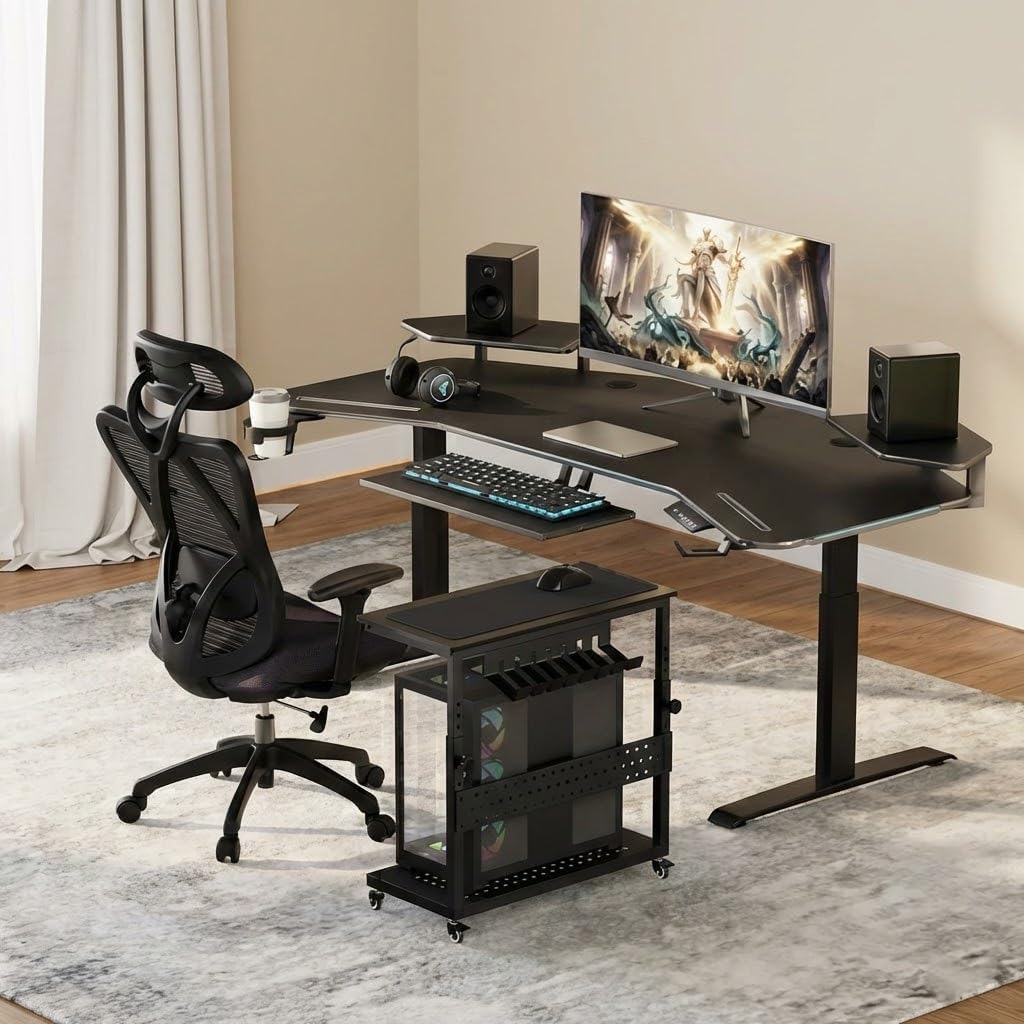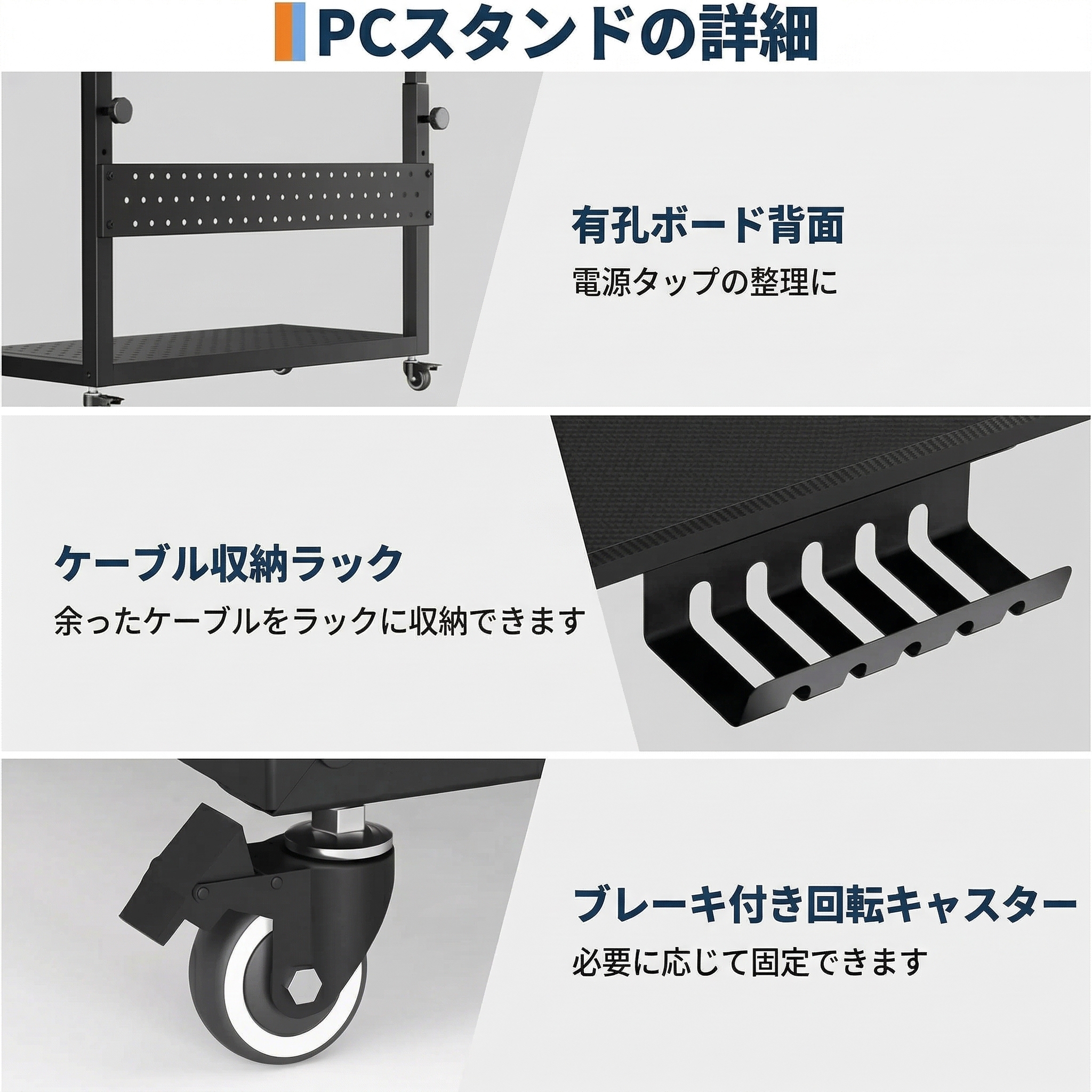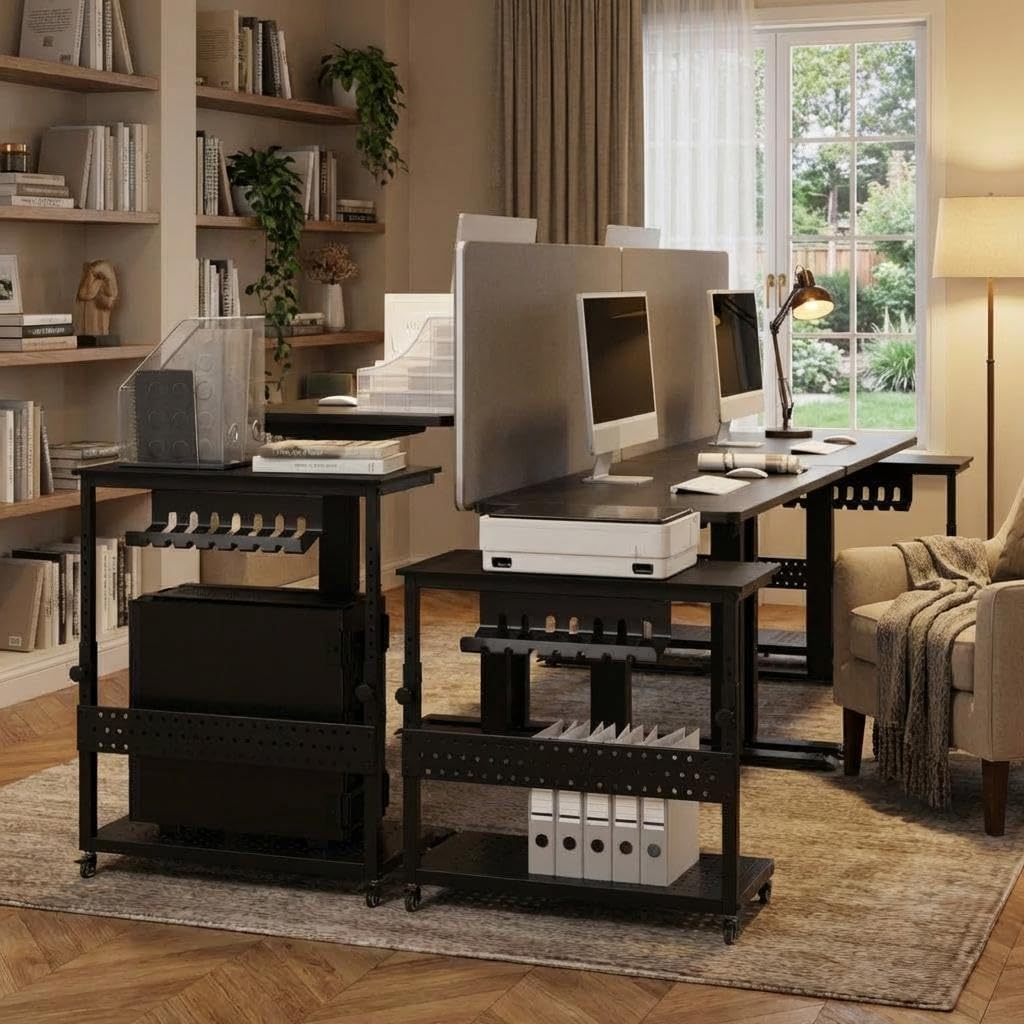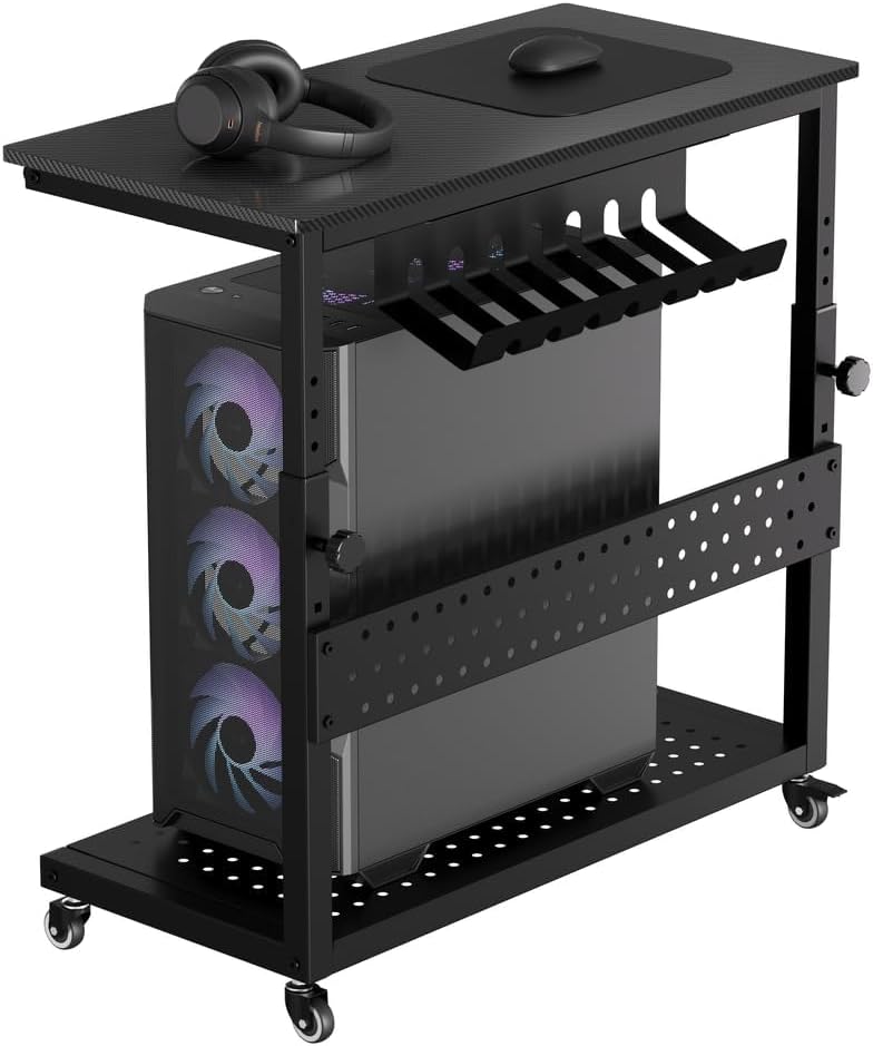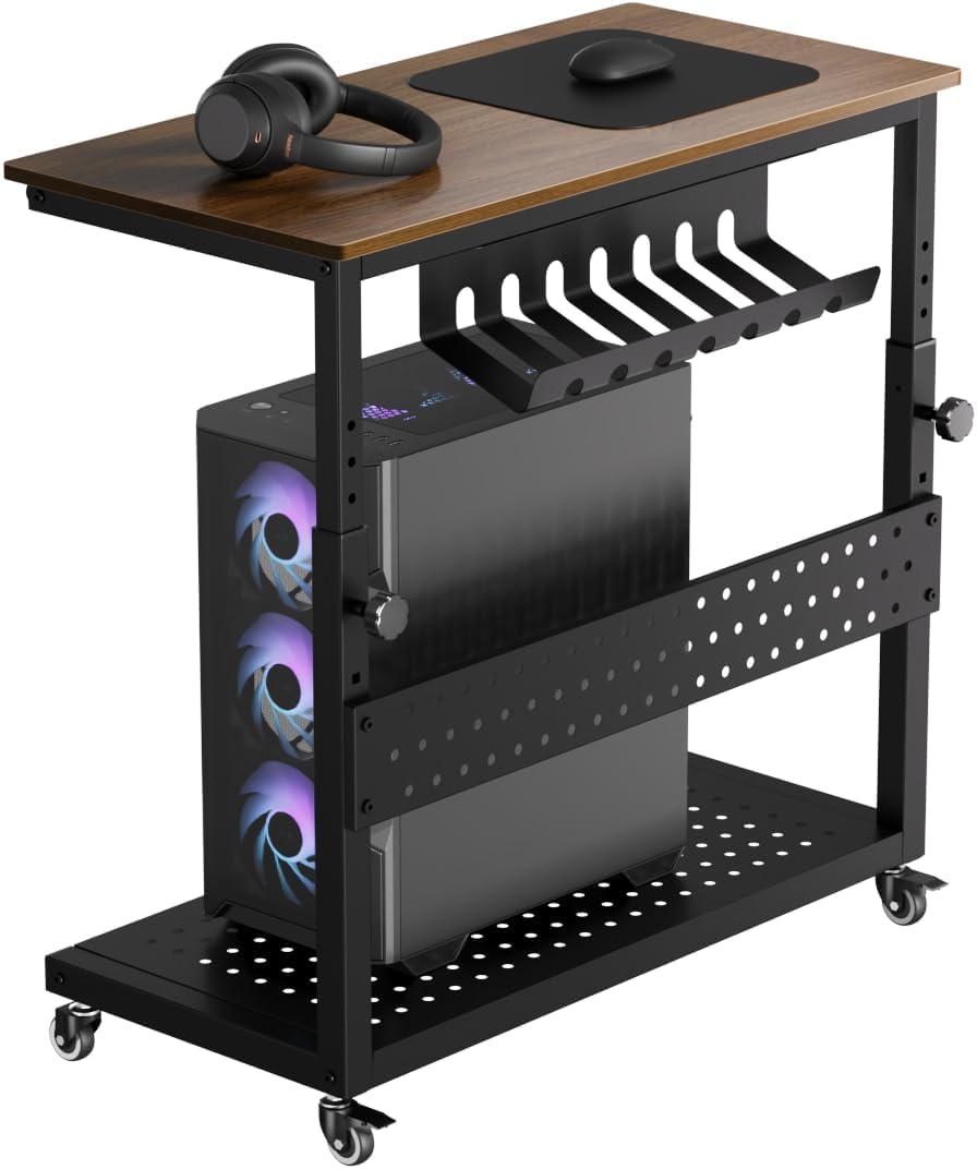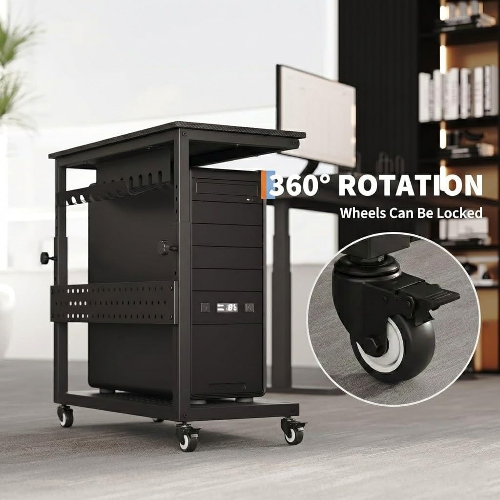 パソコンワゴン PCワゴン 昇降式 耐荷重40kg 幅72×奥行35×高さ58〜87cm 360°キャスター付き ケーブル収納&フック付き CPUスタンドカート ホームオフィス