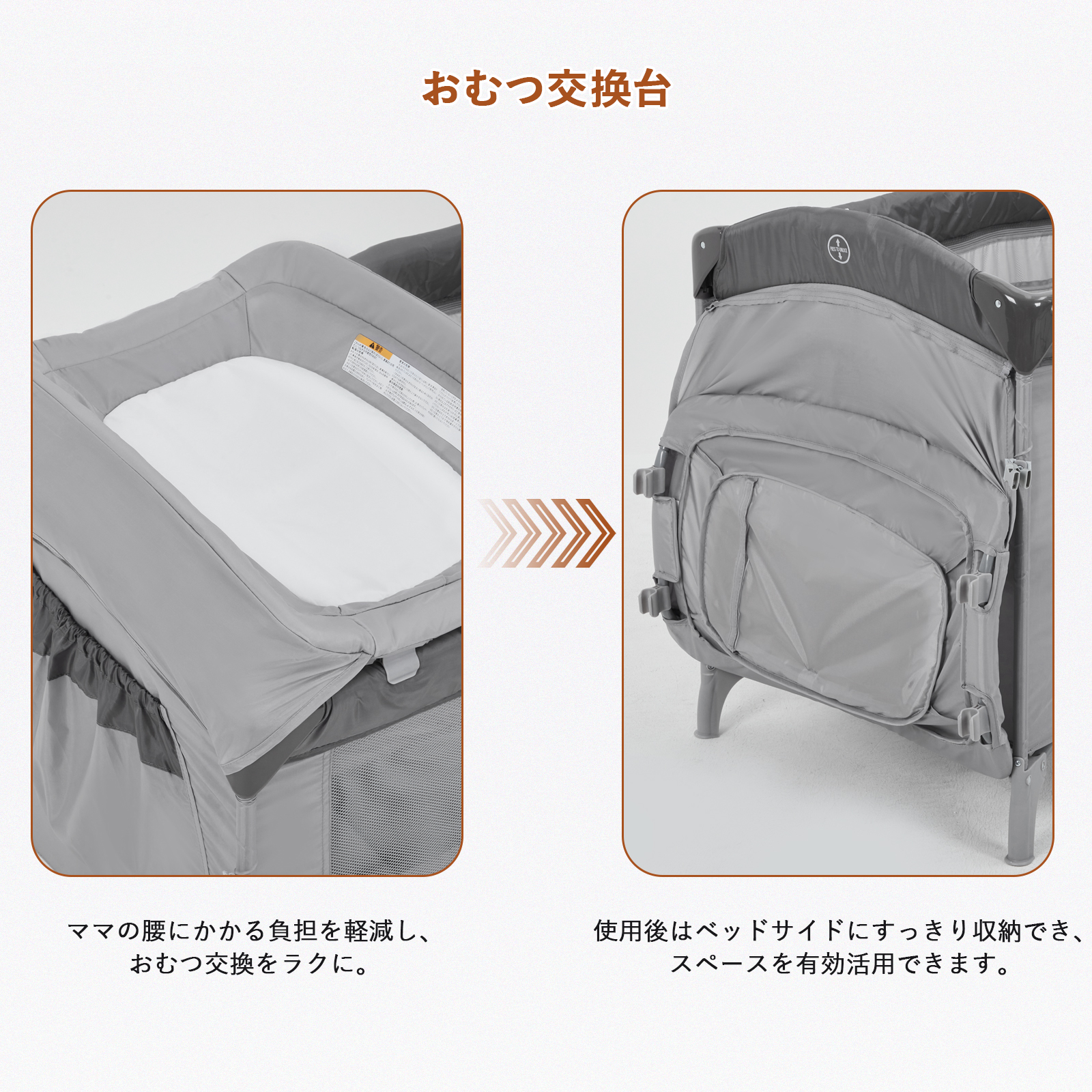 【取り外し可能おむつ交換台&組立簡単】ママの腰への負担を軽減し、一日何度のおむつ交換もらくらくです。