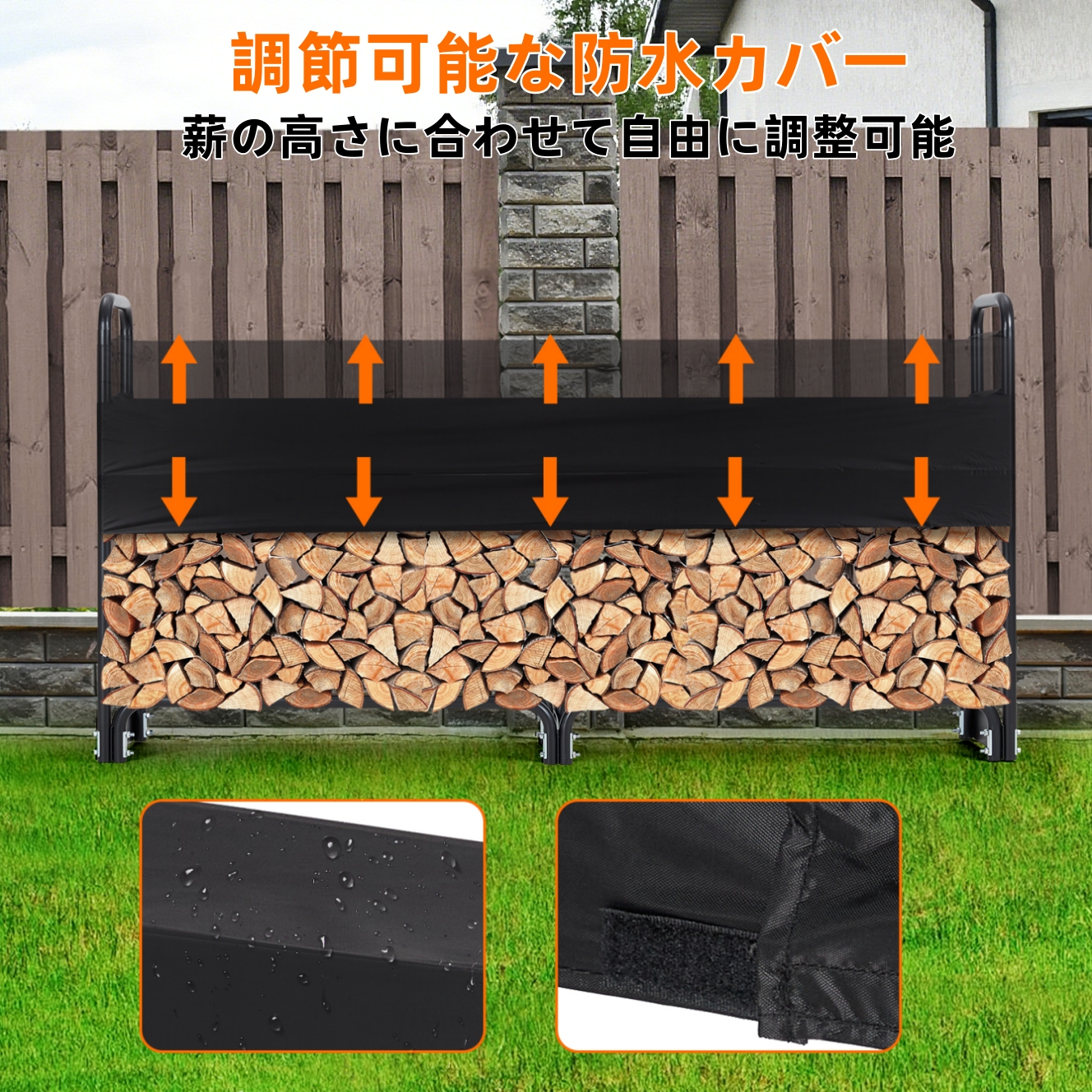 薪ラック 薪ストッカー 幅200cm 耐荷重400kg 1.2mm超厚鋼フレーム 防水カバー付き 屋外 ログラック 薪棚 暖炉・焚火用 組立簡単 頑丈 通気性 おしゃれ