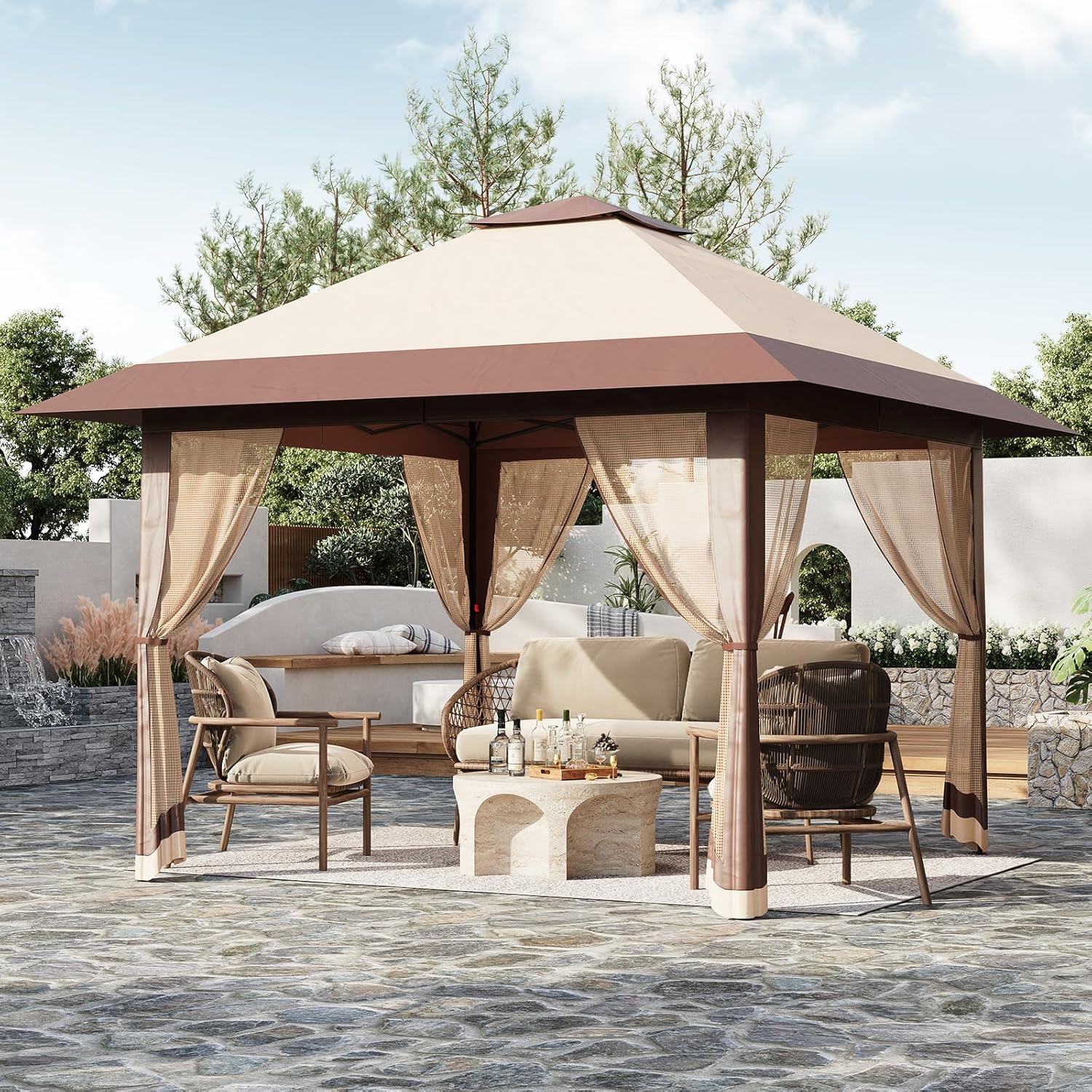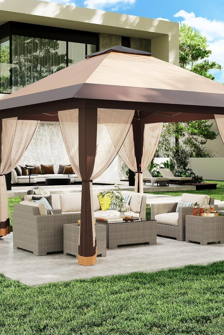ワンタッチタープテント 4mx4m 蚊帳テント UVカット 遮熱 防風防水 3段階調節 組立簡単 虫除け メッシュ設計 アウトドア イベント 収納バッグ付き グレー