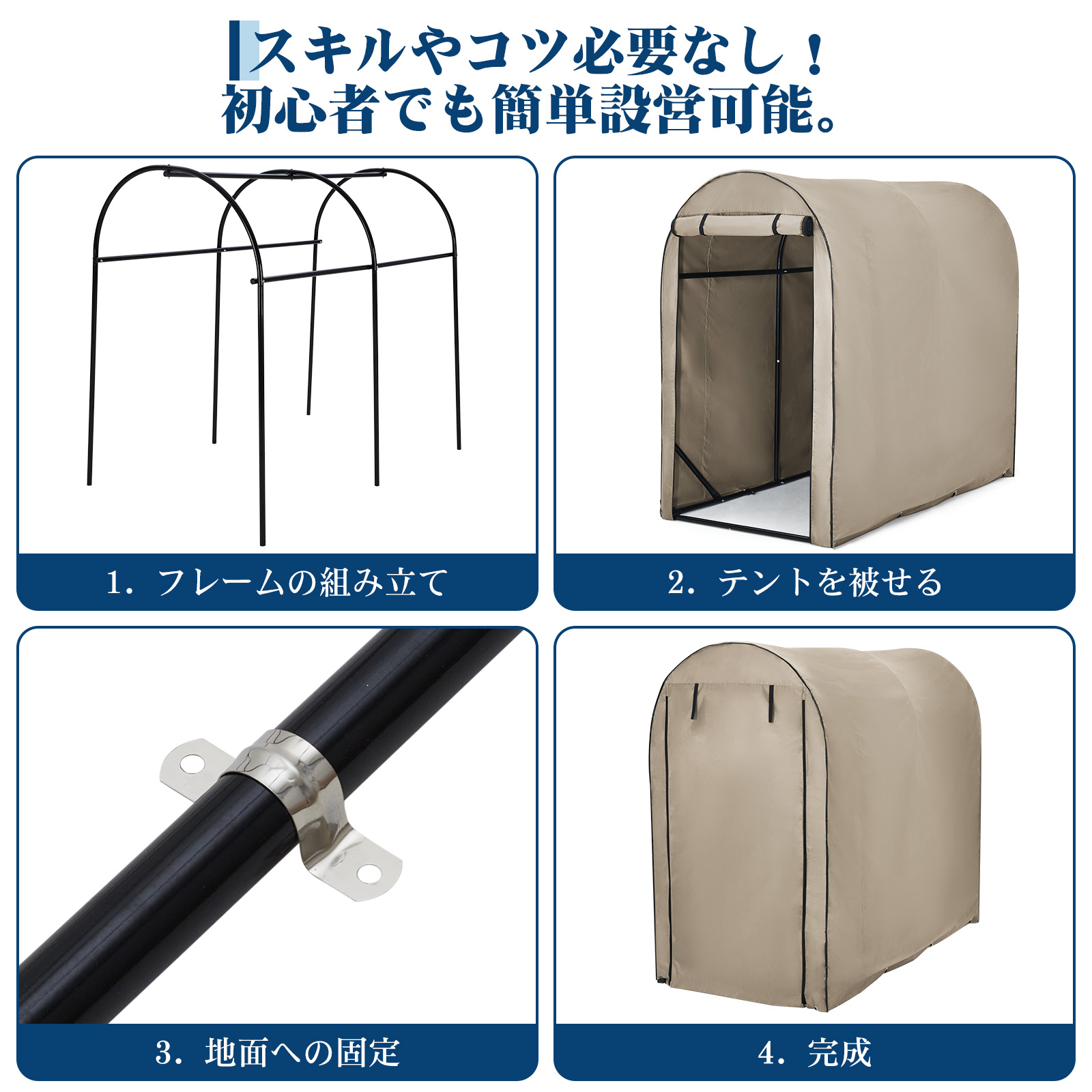 強固なスチールパイプを採用し、設営したときに高い安定性を発揮します。