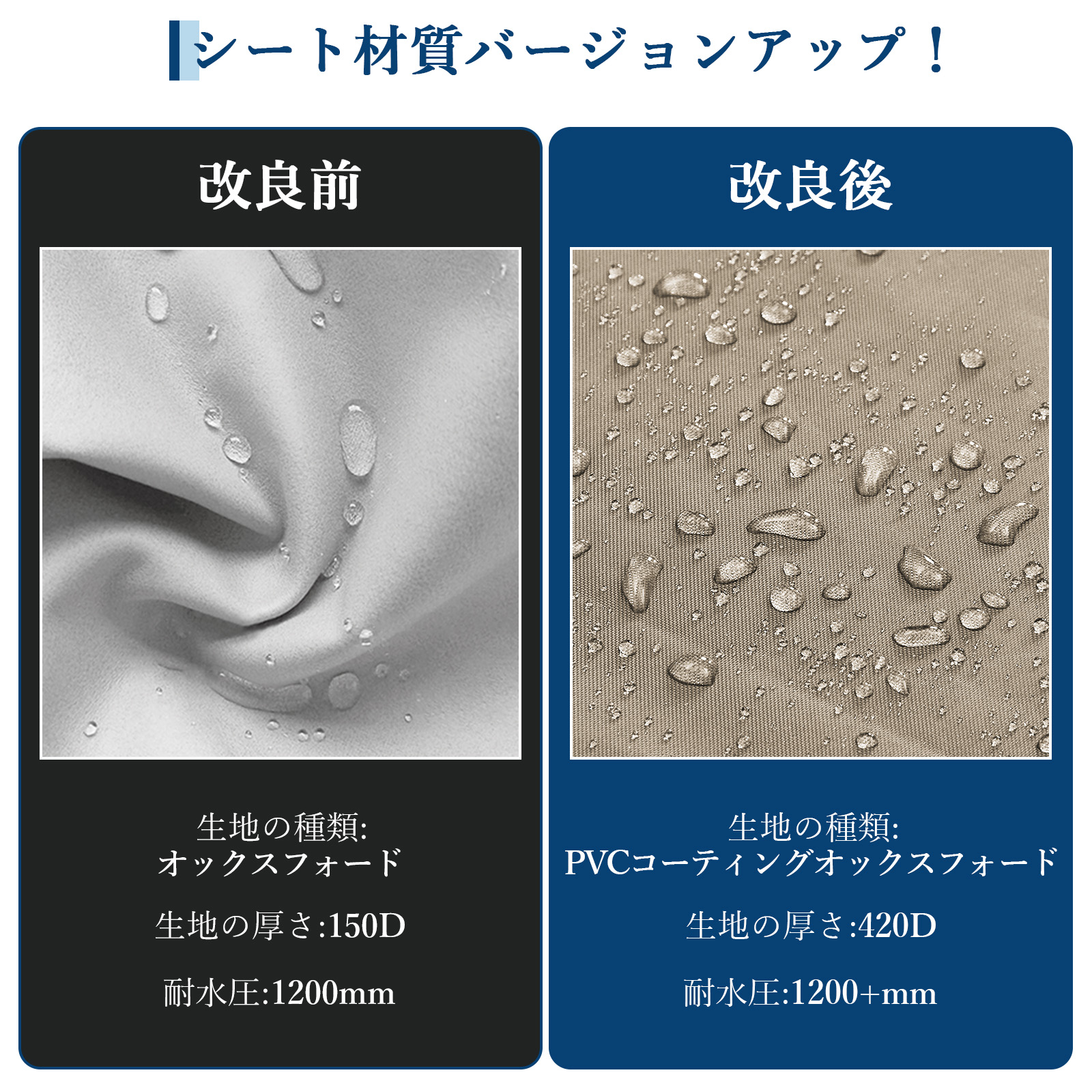 素材は420Dオックスフォード生地を使用しており、耐久性、撥水性また耐候性に優れます。