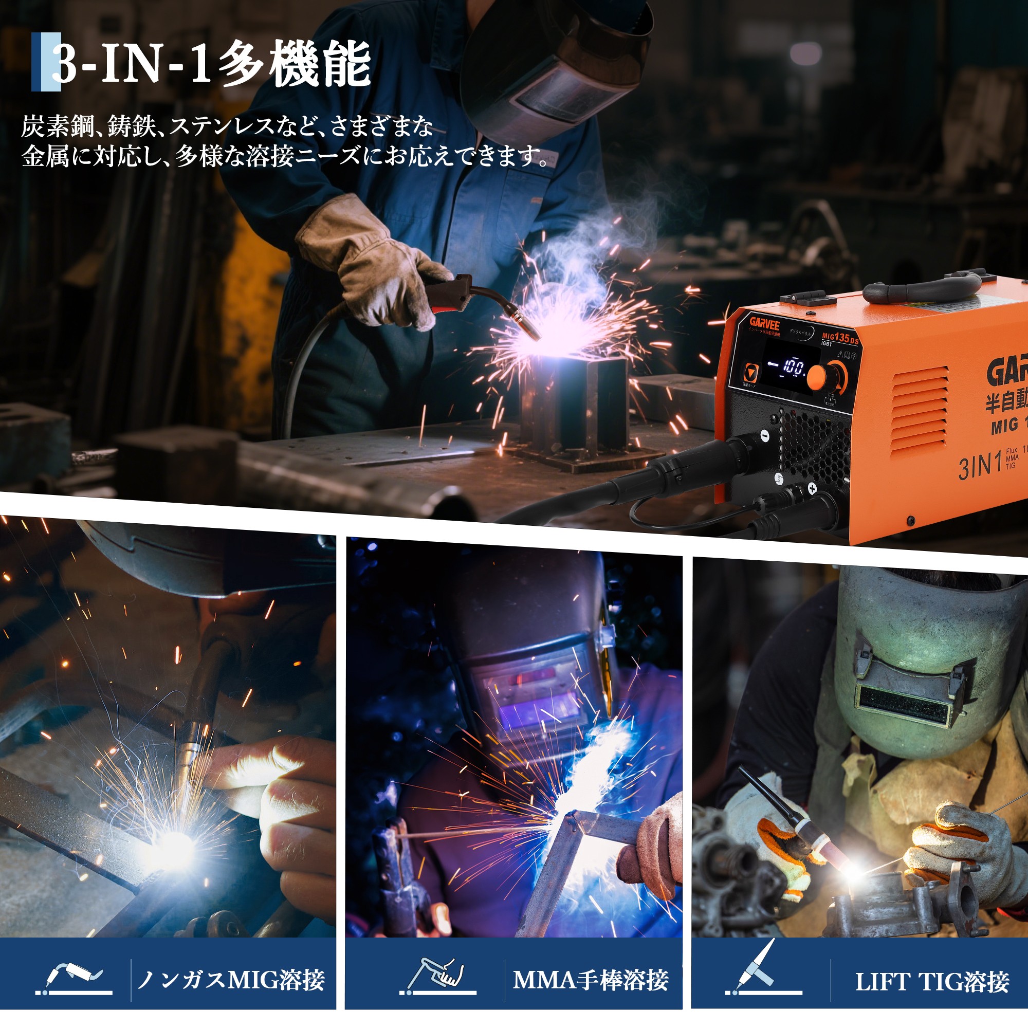 | 定格入力電流(A) | Flux: 34 MMA: 30 Lift-TIG: 26 | Flux: 19.6 MMA: 23.1 Lift-TIG: 19.6 |