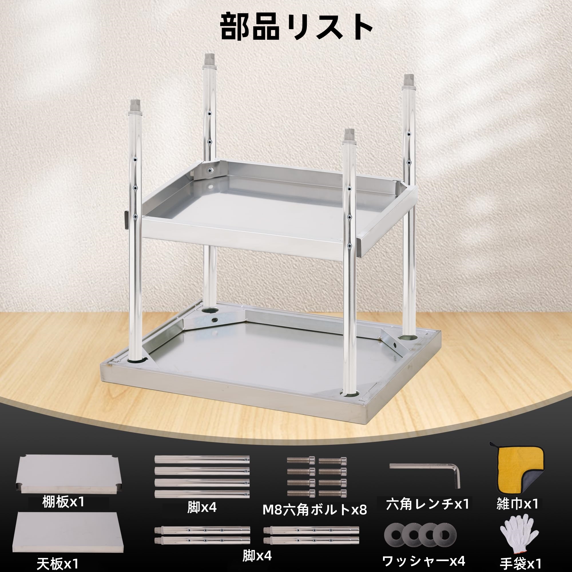 【最大300kg耐荷重で超安定】分厚いステンレス鋼板と補強フレームによる堅牢な設計.重い工具や調理器具をまとめて収めても/重量物を載せてもぐらつきにくい安定性を実現.