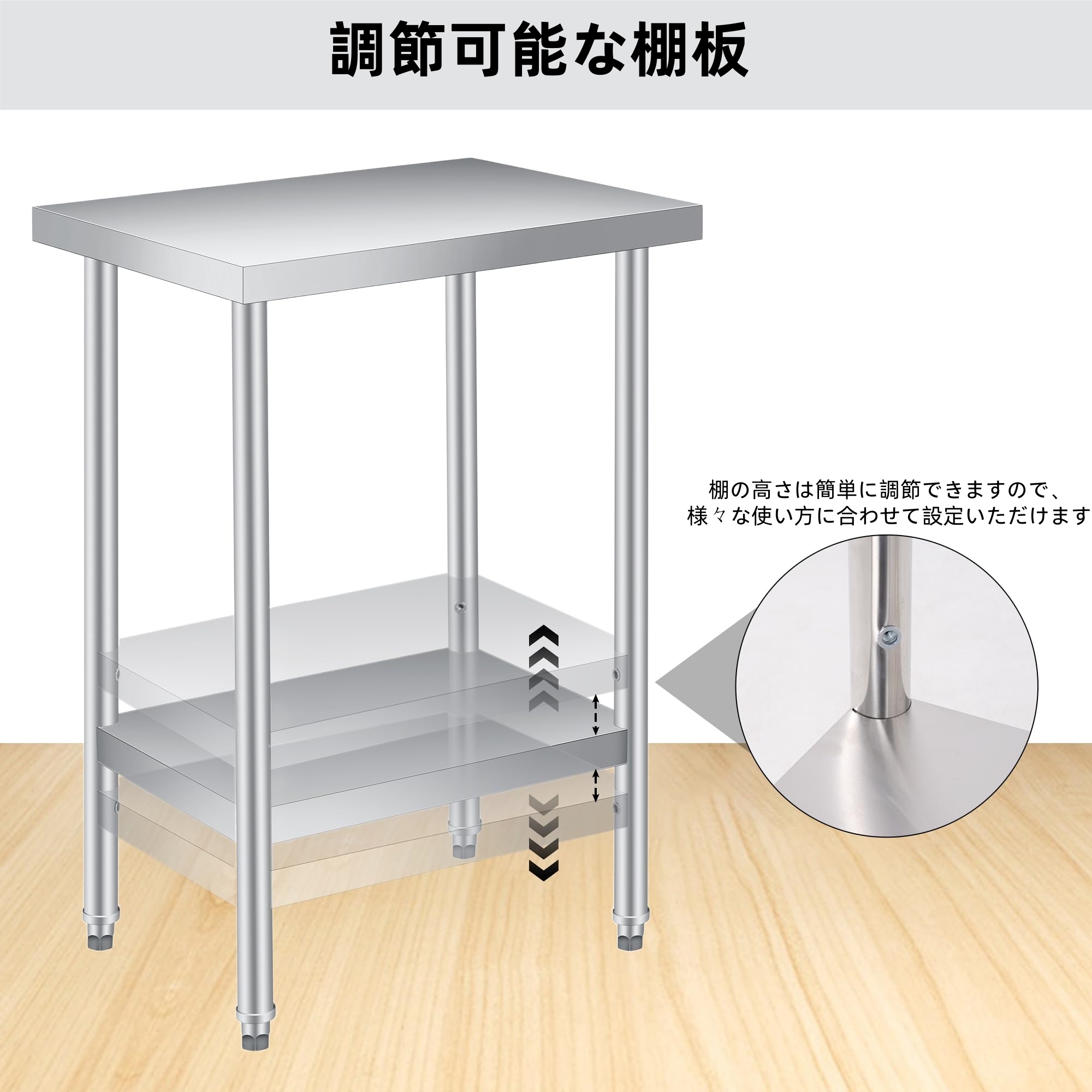 ステンレス作業台 業務用 調理台 2段 耐食性 ステンレステーブ ステンレス調理台 棚板高さ調整可能 防錆 キッチン 飲食店 家庭用